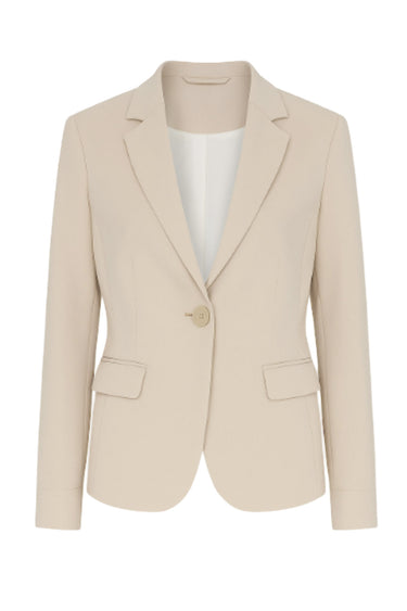 - OBS! Fjernlager\nLeveringen kan blive forlænget med 1-2 dage, hvis varen ikke er at finde i vores butik lige nu.\n\nModel ILLIE BLAZER ILLIE SAND\n\n91% Polyester/ 9% Elestane