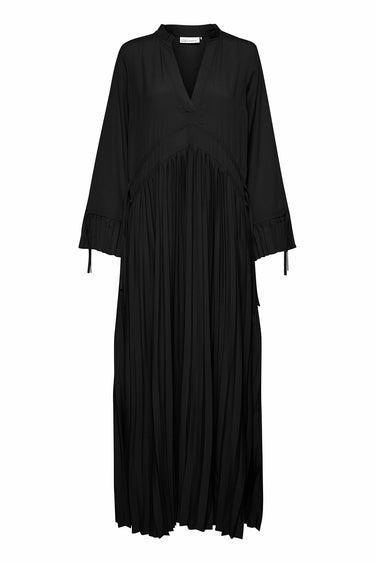 - OBS! Fjernlager. Levering kan blive forlænget med 2-3 dage, hvis varen ikke findes i vores butik lige nu.Smuk kjole fra Karen By Simonsen med lange ærmer, v-hals og flotte plisseret detaljer. Kjolen har også en løstsiddende pasform og en lækker kvalitet der falder flot langs kroppen.