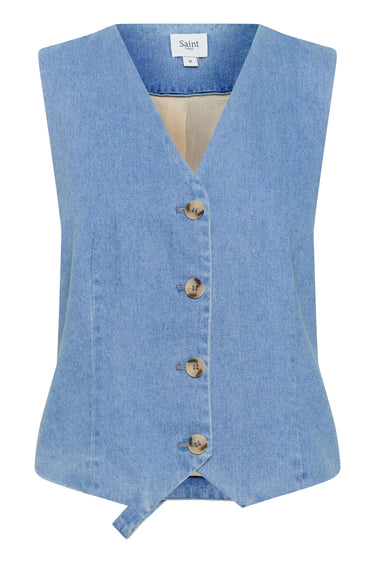 OBS! Fjernlager. Levering kan blive forlænget med 2-3 dage, hvis varen ikke findes i vores butik lige nu.Smart figursyet vest fra Saint Tropez med v-udskæring og fine knapper langs fronten.