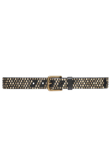 OBS! Fjernlager. Levering kan blive forlænget med 2-3 dage, hvis varen ikke findes i vores butik lige nu.Forbedr din stil med dette skindbælte i 100% skind, som måler 3 cm i bredden. Bæltet er udsmykket med en række små nitter hele vejen rundt, hvilket tilføjer et eksklusivt præg og suppleres af et enkelt spænde. Ideelt til at tilføje en kantet elegance til enhver garderobe.