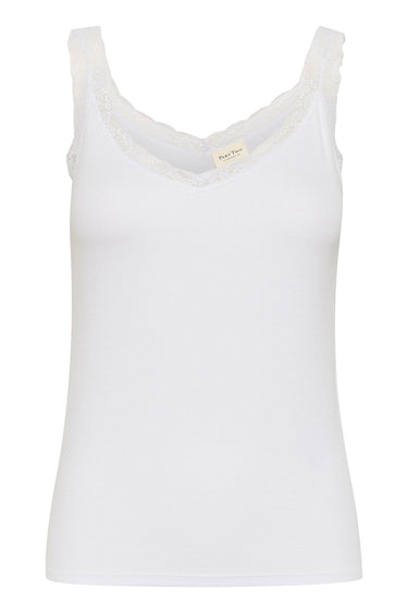 OBS! Fjernlager. Levering kan blive forlænget med 2-3 dage, hvis varen ikke findes i vores butik lige nu.Feminin top fra Part Two med brede skulderstropper, blondekant og en tætsiddende pasform.