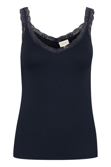 OBS! Fjernlager. Levering kan blive forlænget med 2-3 dage, hvis varen ikke findes i vores butik lige nu.Feminin top fra Part Two med brede skulderstropper, blondekant og en tætsiddende pasform.