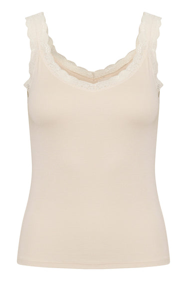 OBS! Fjernlager. Levering kan blive forlænget med 2-3 dage, hvis varen ikke findes i vores butik lige nu.Feminin top fra Part Two med brede skulderstropper, blondekant og en tætsiddende pasform.