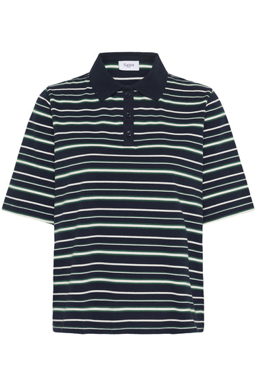 OBS! Fjernlager. Levering kan blive forlænget med 2-3 dage, hvis varen ikke findes i vores butik lige nu.Smart sporty polo tee fra Saint Tropez med korte ærmer med en lille krave i halsen og klassiske striber.