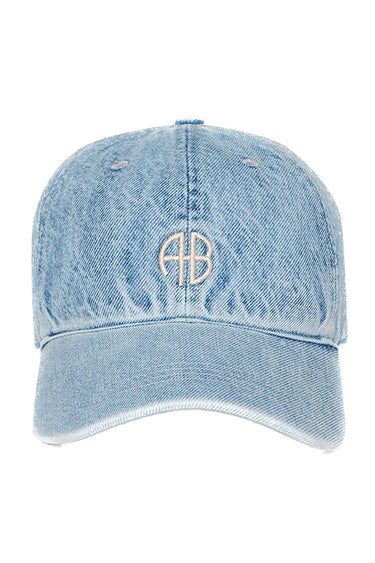 OBS! Fjernlager. Levering kan blive forlænget med 2-3 dage, hvis varen ikke findes i vores butik lige nu.Cool denim kasket fra Anine Bing med et broderet Anine Bing monogram logo foran.