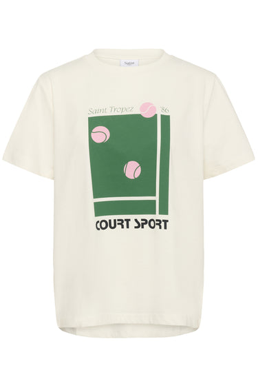 OBS! Fjernlager. Levering kan blive forlænget med 2-3 dage, hvis varen ikke findes i vores butik lige nu.Smart grafisk tee fra Saint Tropez med korte ærmer og rund hals.