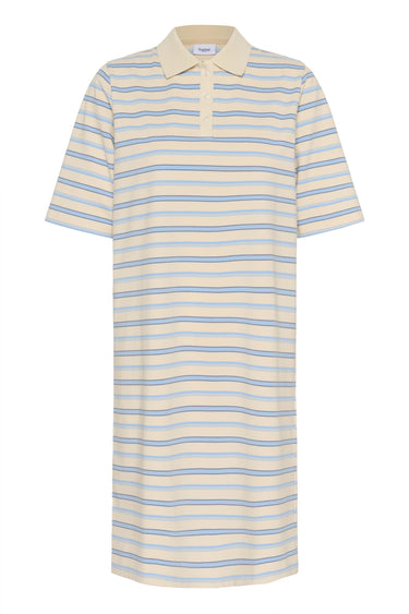 OBS! Fjernlager. Levering kan blive forlænget med 2-3 dage, hvis varen ikke findes i vores butik lige nu.Skøn sporty kjole fra Saint Tropez med korte ærmer, krave i halsen og knaplukning over brystet.