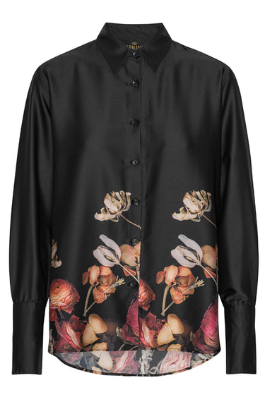 Cool skjortebluse fra Karmamia med lange ærmer, skjortekrave i halsen og brede manchetter.Skjorten lukkes med små knapper langs fronten og er også detaljeret med det smukkeste print i skønne farver.