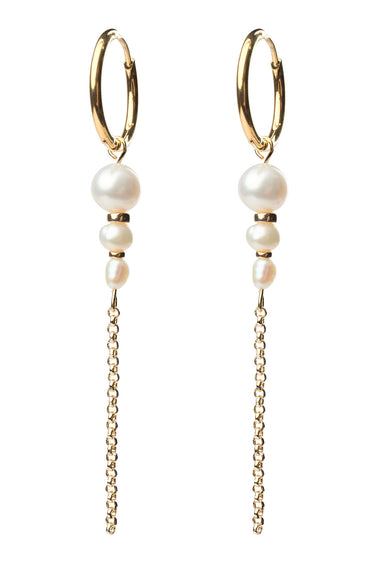 øreringen består af 16 karat guldbelagt messing. øreringen har 3 hvide ferskvandsperler.- Model: Julie White Pearl Tilbehør Guld