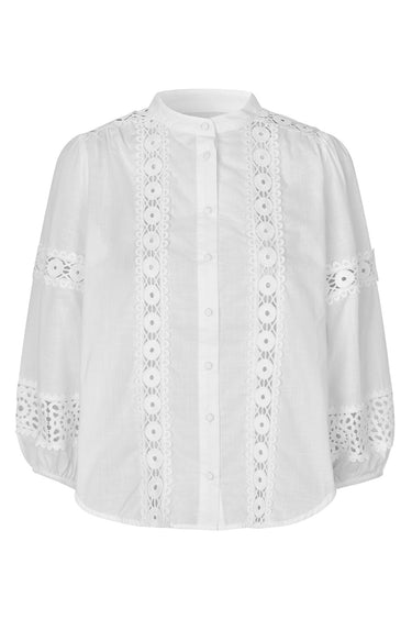 - OBS! Fjernlager. Levering kan blive forlænget med 2-3 dage, hvis varen ikke findes i vores butik lige nu.Elegant skjortebluse fra Lollys Laundry med lange pufærmer, kinakrave i halsen og knaplukning langs fronten.Blusen har også smukke broderet detaljer og en afslappet silhuet.