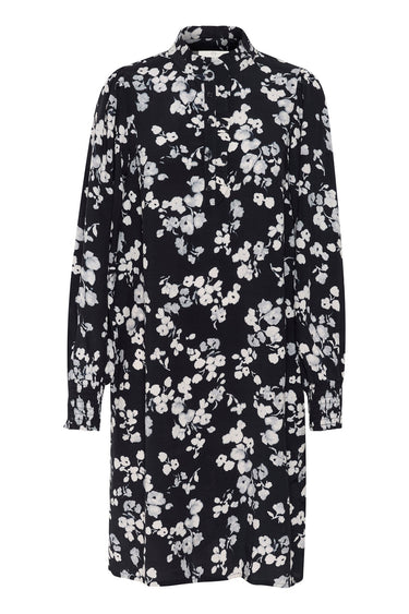 OBS! Fjernlager. Levering kan blive forlænget med 2-3 dage, hvis varen ikke findes i vores butik lige nu.Flot kjole fra Kaffe med lange ærmer, skjortekrave i halsen og knaplukning over brystet.
