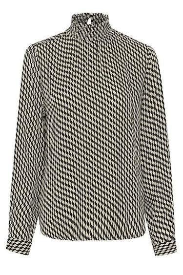 KAamber Smock Blouse Printed Black_White Wavy Print 10508258