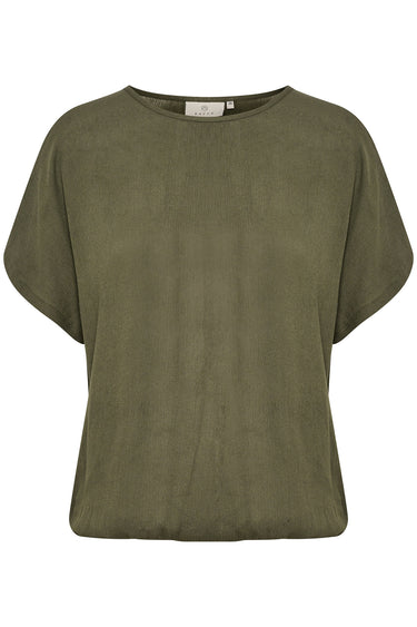 OBS! Fjernlager. Levering kan blive forlænget med 2-3 dage, hvis varen ikke findes i vores butik lige nu.Smart t-shirt fra Kaffe med korte ærmer, rund hals og en løstsiddende pasform.Blusen har også en smal elastikkant i bunden der giver den en fin silhuet.