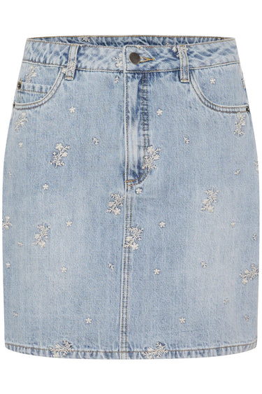 - Model: Kababeth Denim Skirt Nederdele 10509717 Blue Denim/Feather Flower Emb.