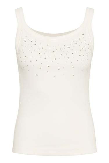 OBS! Fjernlager. Levering kan blive forlænget med 2-3 dage, hvis varen ikke findes i vores butik lige nu.Flot tank top fra Kaffe med brede skulderstropper og fine små nitter over brystet.