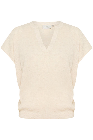 OBS! Fjernlager. Levering kan blive forlænget med 2-3 dage, hvis varen ikke findes i vores butik lige nu.Super fin bluse fra Kaffe med korte ærmer, rund hals med v-udskæring og en bred elastikkant i bunden.