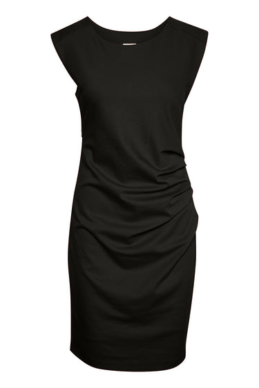 OBS! Fjernlager. Levering kan blive forlænget med 2-3 dage, hvis varen ikke findes i vores butik lige nu.Elegant tætsiddende kjole fra Kaffe med rund hals og de flotteste draperet effekter.