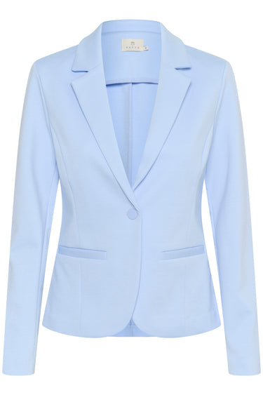 OBS! Fjernlager. Levering kan blive forlænget med 2-3 dage, hvis varen ikke findes i vores butik lige nu.Klassisk blazer fra Kaffe med lange ærmer, v-udskæring med en fin krave i halsen og knaplukning i fronten.
