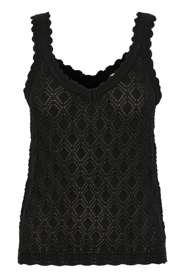 OBS! Fjernlager. Levering kan blive forlænget med 2-3 dage, hvis varen ikke findes i vores butik lige nu.Smuk strikket top fra Kaffe med fine brede skulderstropper og det flotteste mønster.
