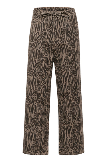 OBS! Fjernlager. Levering kan blive forlænget med 2-3 dage, hvis varen ikke findes i vores butik lige nu.Smarte højtaljede denim jeans fra Kaffe med en løs silhuet, bindebånd i taljen og et cool print.