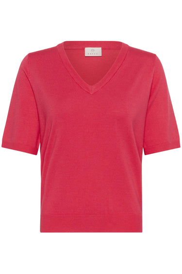 OBS! Fjernlager. Levering kan blive forlænget med 2-3 dage, hvis varen ikke findes i vores butik lige nu.Lækker strik fra Kaffe med korte ærmer, v-udskæring i halsen og en dejlig blød kvalitet.