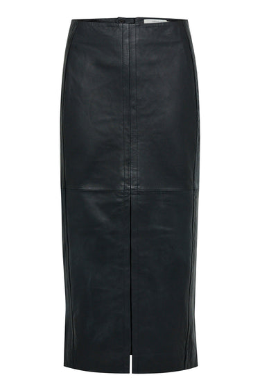 OBS! Fjernlager. Levering kan blive forlænget med 2-3 dage, hvis varen ikke findes i vores butik lige nu.Super flot nederdel fra InWear med en mid-rise talje, slids i fronten og en lækker blød skindkvalitet.