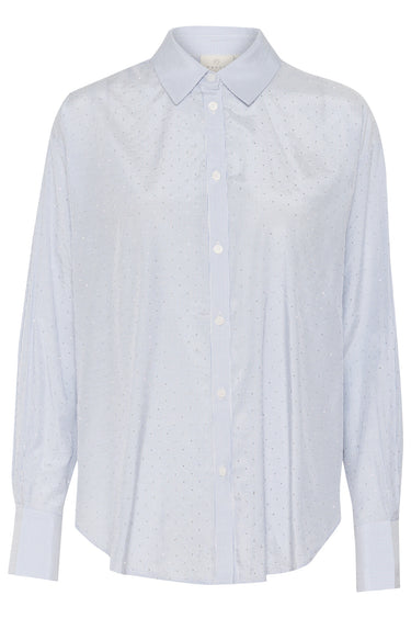OBS! Fjernlager. Levering kan blive forlænget med 2-3 dage, hvis varen ikke findes i vores butik lige nu.Klassisk skjorte fra Kaffe med lange ærmer, krave i halsen og knaplukning langs fronten.