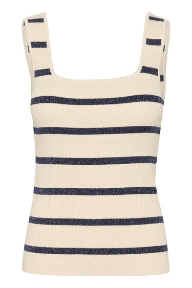 OBS! Fjernlager. Levering kan blive forlænget med 2-3 dage, hvis varen ikke findes i vores butik lige nu.Fin strikket top fra Kaffe med firkantet halsudskæring, brede skulderstropper og klassiske striber.