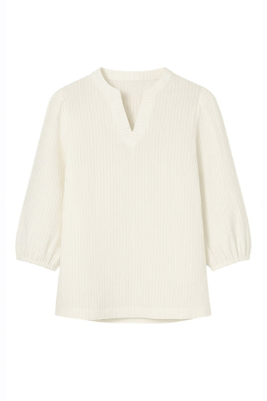 OBS! Fjernlager. Levering kan blive forlænget med 2-3 dage, hvis varen ikke findes i vores butik lige nu.Flot enkel bluse fra 2-Biz med ¾ lange ærmer, rund hals med en lille v-udskæring og en fin stribet kvalitet.