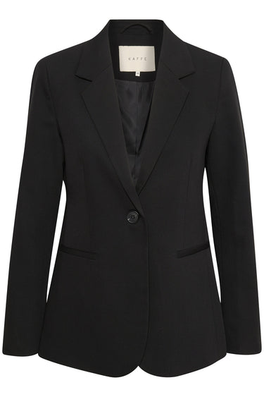 OBS! Fjernlager. Levering kan blive forlænget med 2-3 dage, hvis varen ikke findes i vores butik lige nu.Flot blazer fra Kaffe med lange ærmer, en klassisk krave om halsen og en stor knap til at lukke med i fronten.