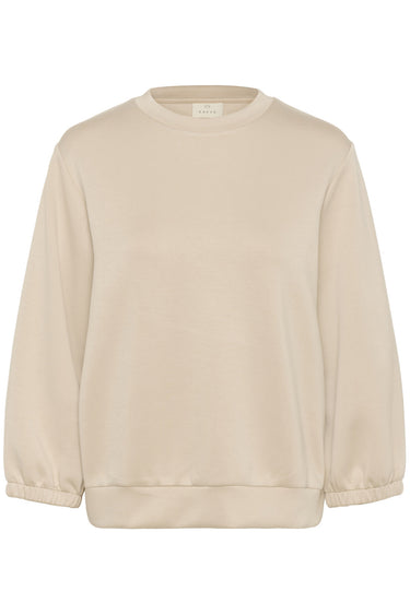 OBS! Fjernlager. Levering kan blive forlænget med 2-3 dage, hvis varen ikke findes i vores butik lige nu.Lækker enkel sweatshirt fra Kaffe med en bred elastikkant i bunden, rund hals og en super blød kvalitet.