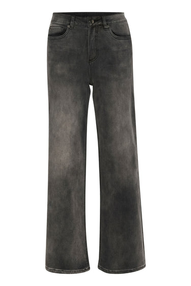 OBS! Fjernlager. Levering kan blive forlænget med 2-3 dage, hvis varen ikke findes i vores butik lige nu.Smarte jeans fra Kaffe med et helt enkelt udtryk, vidde i benene og høj talje.