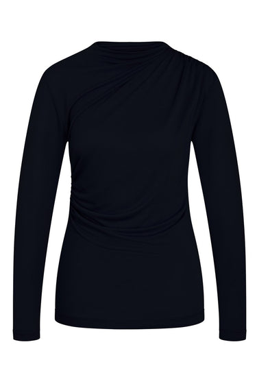 OBS! Fjernlager. Levering kan blive forlænget med 2-3 dage, hvis varen ikke findes i vores butik lige nu.Super lækker bluse fra Bruuns Bazaar med lange ærmer, rund hals og flotte draperet effekter over fronten.