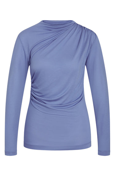 OBS! Fjernlager. Levering kan blive forlænget med 2-3 dage, hvis varen ikke findes i vores butik lige nu.Smuk bluse fra Bruuns Bazaar med lange ærmer, rund hals og de flotteste draperet effekter.