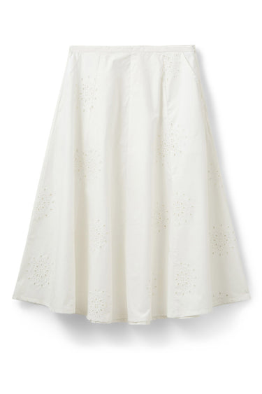 - OBS! Fjernlager. Levering kan blive forlænget med 2-3 dage, hvis varen ikke findes i vores butik lige nu.Smuk broderi anglaise nederdel fra Sofie Schnoor med en smal elastikkant i taljen, et klassisk A-snit og de fineste detaljer.