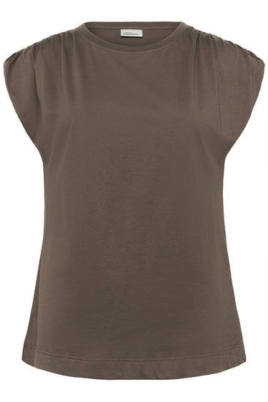 OBS! Fjernlager. Levering kan blive forlænget med 2-3 dage, hvis varen ikke findes i vores butik lige nu.Fin enkel top fra Karen By Simonsen med korte ærmer, rund hals og en dejlig blød kvalitet.