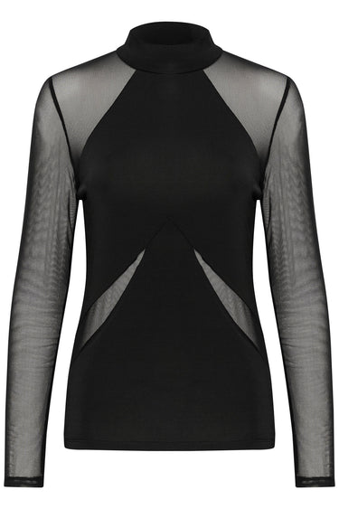 OBS! Fjernlager. Levering kan blive forlænget med 2-3 dage, hvis varen ikke findes i vores butik lige nu.Flot tætsiddende mesh top fra Karen By Simonsen med lange ærmer, høj hals og et fint mønster.