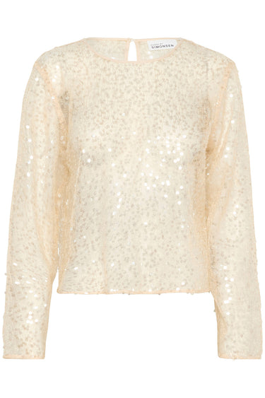 OBS! Fjernlager. Levering kan blive forlænget med 2-3 dage, hvis varen ikke findes i vores butik lige nu.Flot paillet top fra Karen By Simonsen med lange ærmer, rund hals og en fin transparent kvalitet.