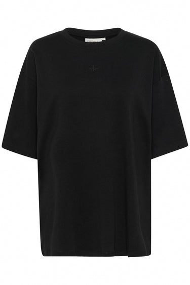 - OBS! Fjernlager. Levering kan blive forlænget med 2-3 dage, hvis varen ikke findes i vores butik lige nu.Smart oversized tee fra Karen By Simonsen med ½ lange ærmer og rund hals.