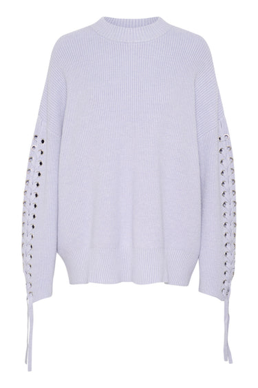 - OBS! Fjernlager. Levering kan blive forlænget med 2-3 dage, hvis varen ikke findes i vores butik lige nu.Super cool strik fra Karen By Simonsen med lange ærmer, rund hals og smarte bindesnorsdetaljer langs ærmerne.