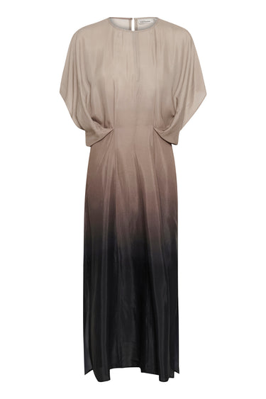 OBS! Fjernlager. Levering kan blive forlænget med 2-3 dage, hvis varen ikke findes i vores butik lige nu.Smuk kjole fra Karen By Simonsen med ½ lange ærmer, rund hals og et super flot gradient print.