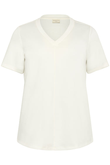 OBS! Fjernlager. Levering kan blive forlænget med 1-2 dage, hvis varen ikke findes i vores butik lige nu.Fin enkel tee fra Kaffe Curve med korte ærmer og v-udskæring i halsen.