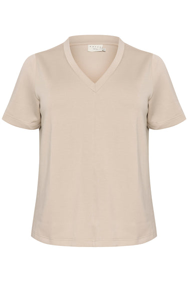 OBS! Fjernlager. Levering kan blive forlænget med 1-2 dage, hvis varen ikke findes i vores butik lige nu.Fin enkel tee fra Kaffe Curve med korte ærmer og v-udskæring i halsen.