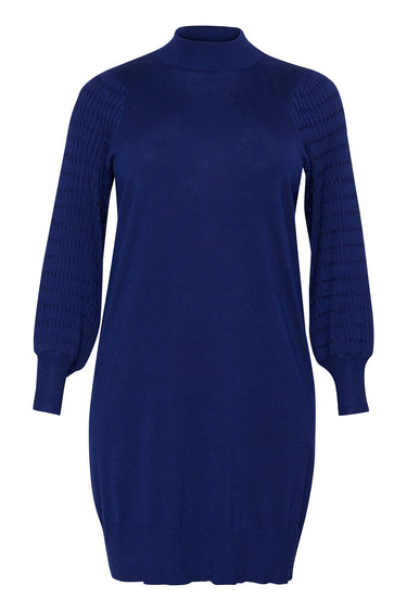 OBS! Fjernlager. Levering kan blive forlænget med 2-3 dage, hvis varen ikke findes i vores butik lige nu.Flot strikkjole fra Kaffe Curve med lange pufærmer, tætsiddende manchetter og høj hals.Kjolen har også en dejlig blød kvalitet og en afslappet silhuet.
