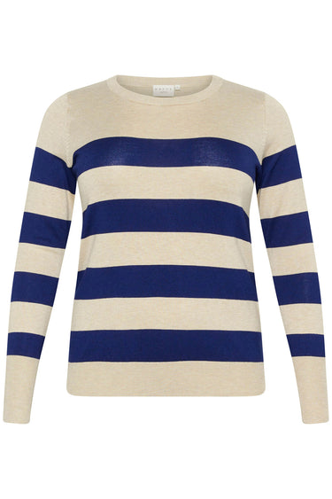 OBS! Fjernlager. Levering kan blive forlænget med 2-3 dage, hvis varen ikke findes i vores butik lige nu.Smart strik fra Kaffe Curve med lange ærmer, rund hals og fine striber.