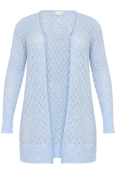 OBS! Fjernlager. Levering kan blive forlænget med 2-3 dage, hvis varen ikke findes i vores butik lige nu.Fin åbentstående cardigan fra Kaffe Curve med lange ærmer og et flot mønster.