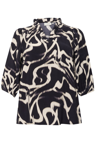 KCmaren Frill Blouse Black/Nature Organic Lines 10583403