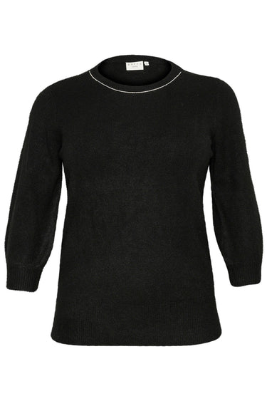 OBS! Fjernlager. Levering kan blive forlænget med 2-3 dage, hvis varen ikke findes i vores butik lige nu.Blød og lækker strik fra Kaffe Curve med ¾ lange ærmer, tætsiddende ribmanchetter og rund hals der er detaljeret med en super fin lille glimmerkant.
