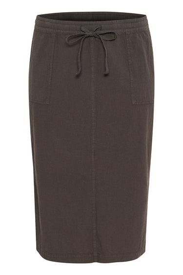- OBS! Fjernlager. Levering kan blive forlænget med 2-3 dage, hvis varen ikke findes i vores butik lige nu.Blød og lækker nederdel fra Kaffe Curve med en løs silhuet, slidser i siderne og en smal elastikkant med bindesnor i taljen.