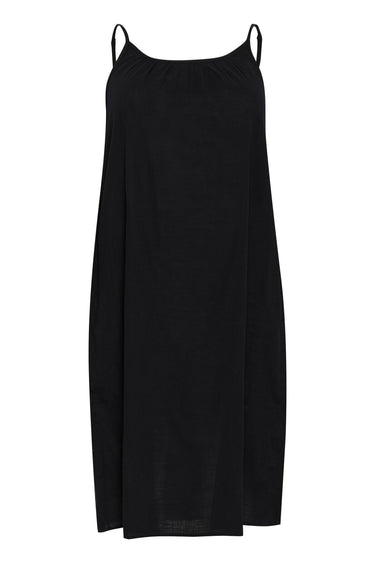 OBS! Fjernlager. Levering kan blive forlænget med 1-2 dage, hvis varen ikke findes i vores butik lige nu.Enkel kjole fra Kaffe Curve med smalle justerbare skulderstropper, lommer i siderne og en afslappet silhuet.